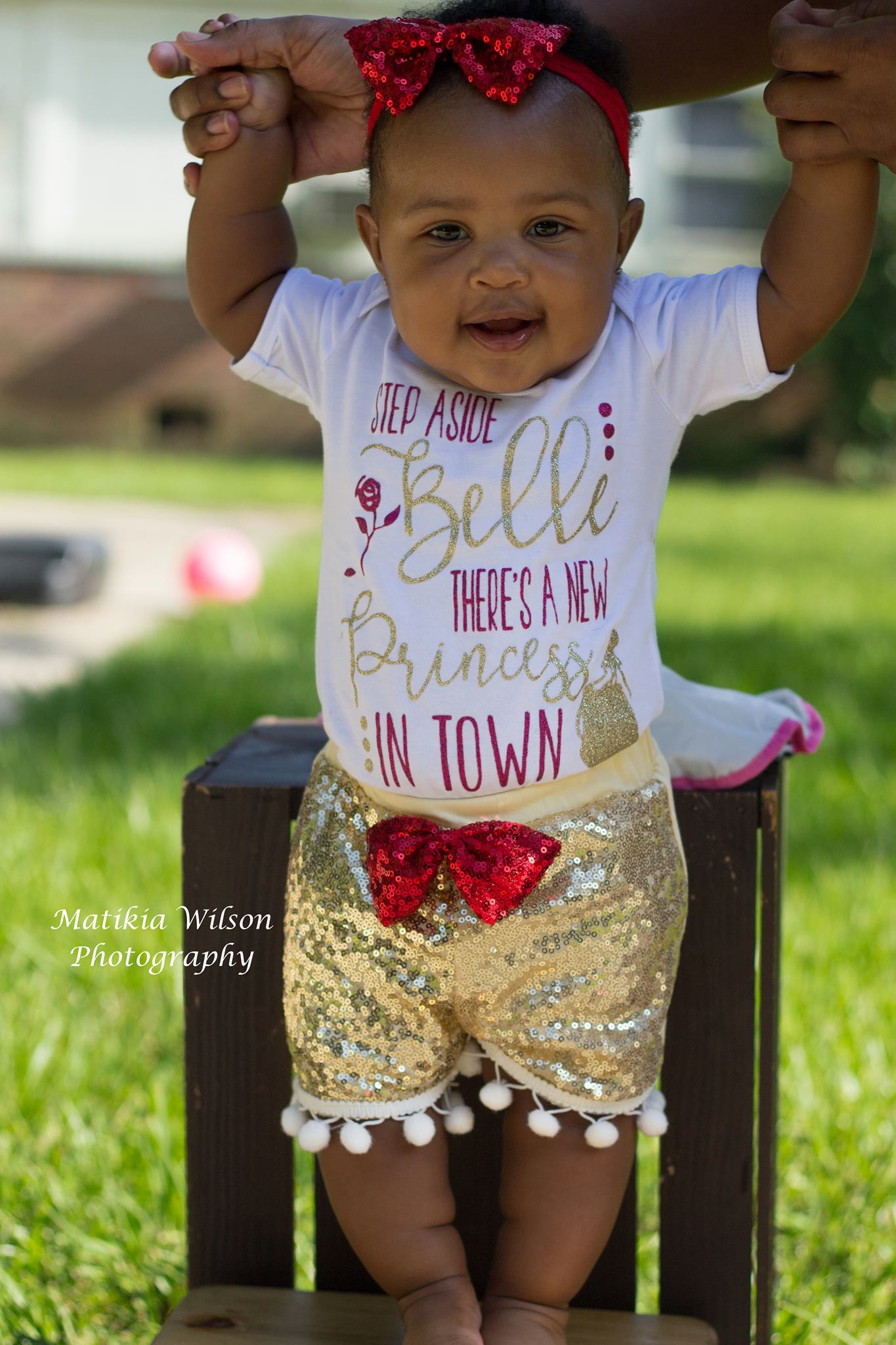Infant disney belle outfit girls 3pc set onesie shorts and headband