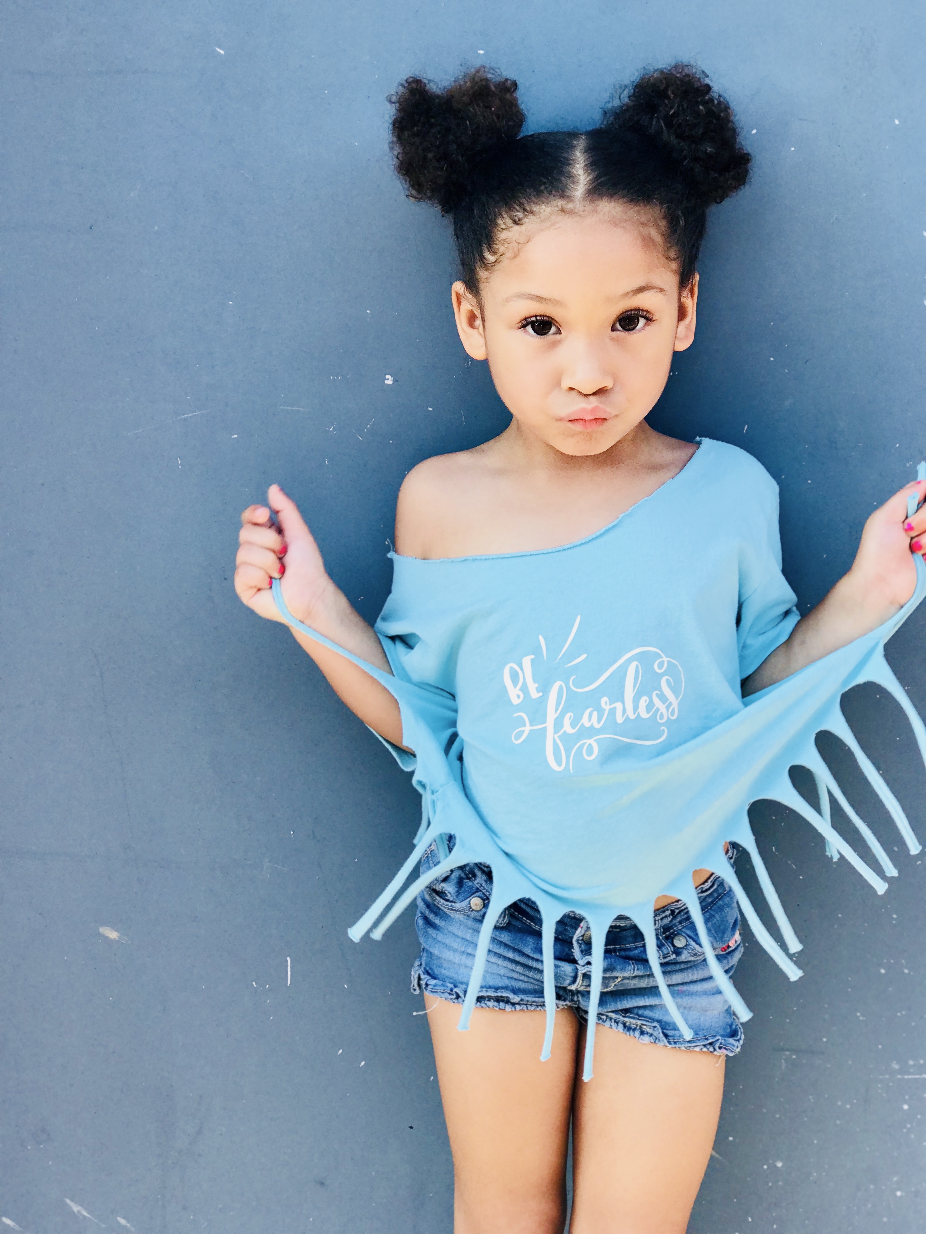 Girl' Blue Be Fearless Fringe Tee's Free Infant Babies Toddlers Tots children